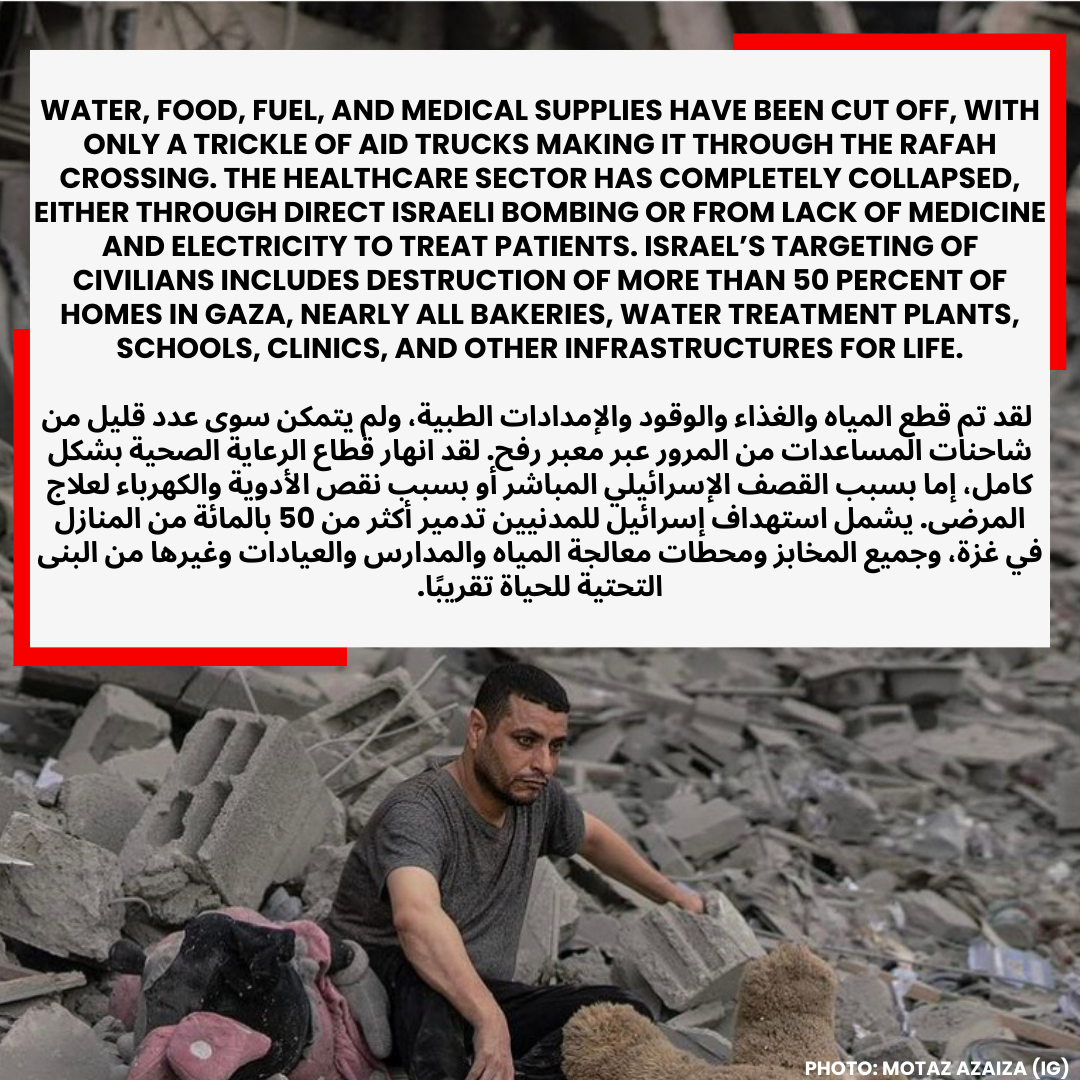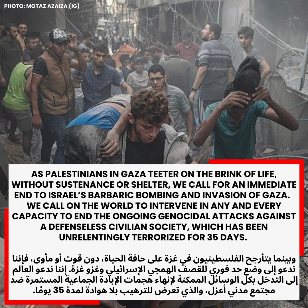Our energies and efforts around the world are focused on supporting the heroic Palestinian people in Gaza and throughout occupied Palestine and organizing everywhere in exile and diaspora, on the international, Arab and Palestinian levels, to bring an end to the genocide, to affirm the legitimacy and leadership of the Palestinian resistance, and to liberate Palestine, all of Palestine. The systemic racist abuse directed at the Palestinian people and the Arab and Muslim communities more broadly will not silence us nor will it suppress our work. Whether the repression is taking place in Germany, France, Britain, Canada or the United States, it is clear that these attacks on strugglers for justice in Palestine reflects only the desperation of the imperialist powers to defend their illegitimate Zionist settler colonial project planted in the heart of the Arab region by all means, including tearing apart all of their proclamations and pledges of democracy, human rights, freedom of expression and freedom of association. We express our clear solidarity with all people and organizations who have been targeted for arrest, detention, police raids, searches, harassment, employer retaliation, official silencing and other forms of persecution for their positions on Palestinian liberation.