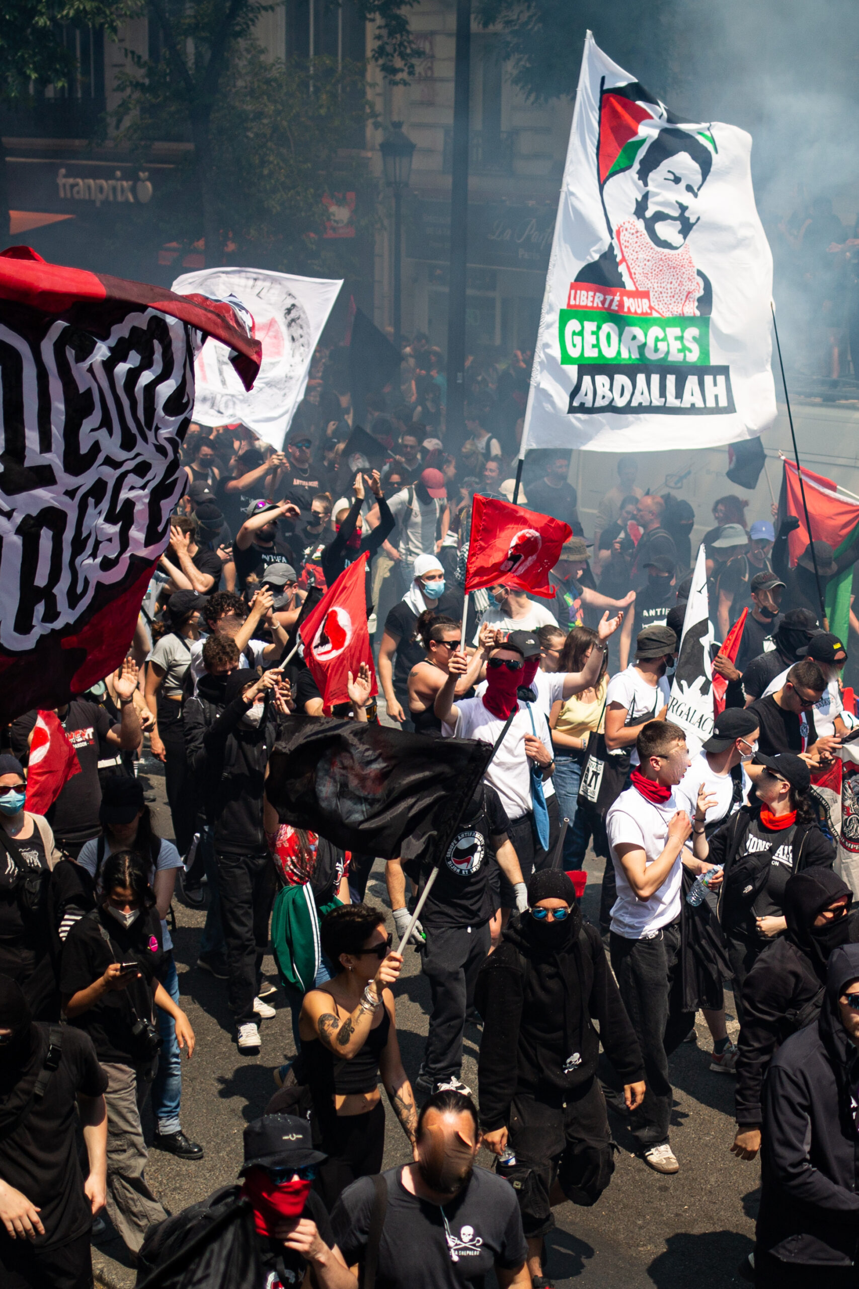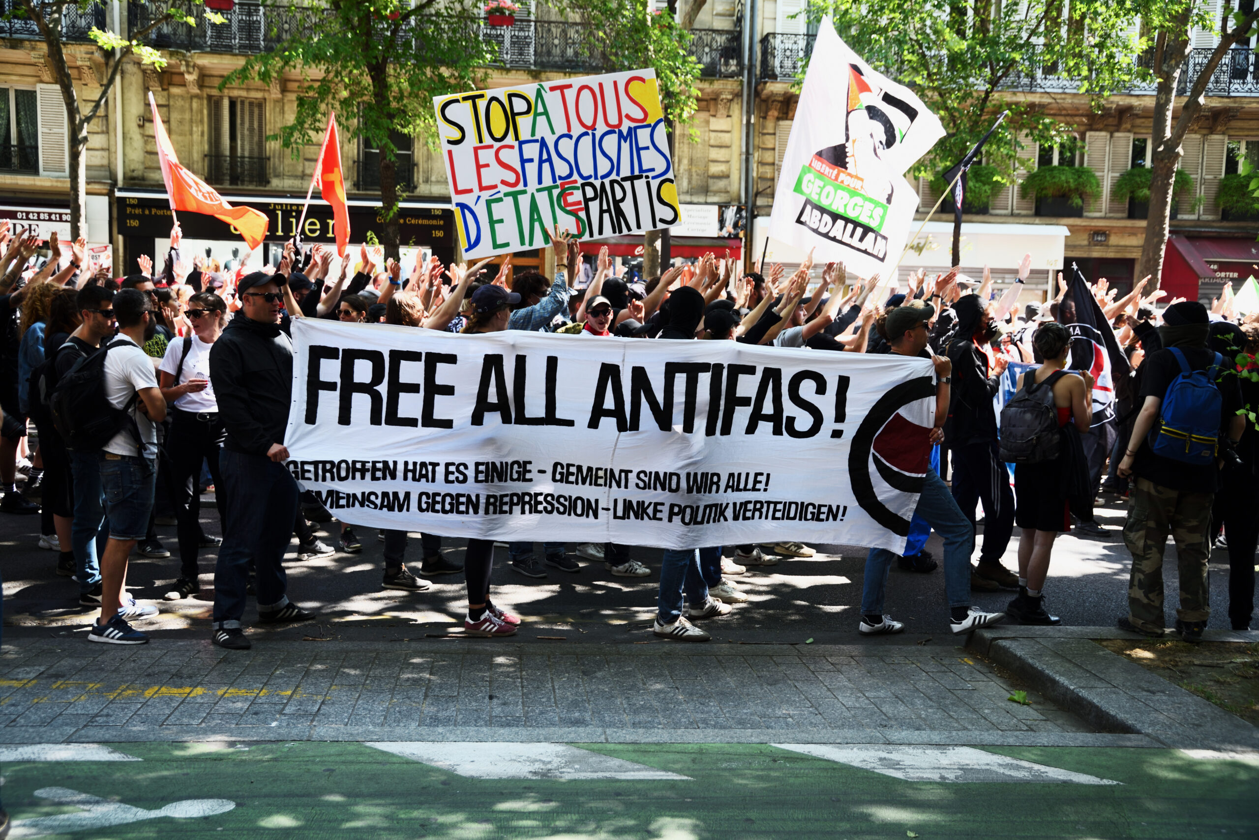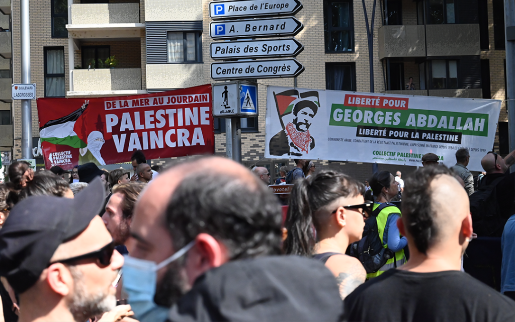 On Sunday, 4 June in Barbes, several thousand people had gathered for the mass anti-fascist demonstration, a central part of the commemorations that take place each year. For the 10th anniversary, and as in previous years, several international delegations had made the trip, waving their flags and badges above the procession. Alongside various organizations such as the NPA, Solidaires, la Fosse aux Lyons, Tsedek! and others, Samidoun Paris Banlieue marched in the demonstration. We expressed our solidarity with one of the longest-held political prisoners in Europe, incarcerated since 1984 in French prisons: the Lebanese Arab communist struggle for Palestine, Georges Abdallah.