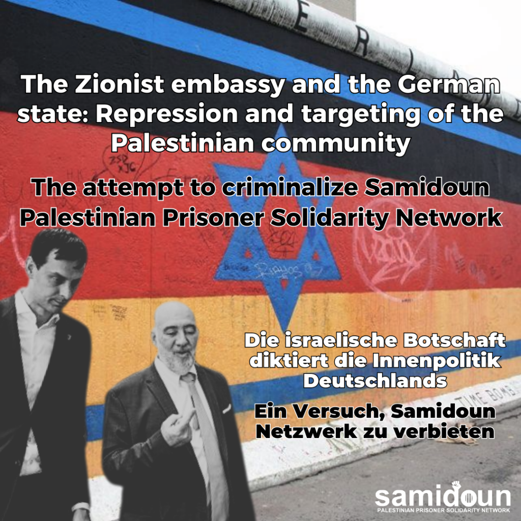 The “German-Israeli Society” announced that it has filed a complaint with the Berlin police against Samidoun Palestinian Prisoner Solidarity Network to classify it as a terrorist organization in Germany and to ban it on the basis of law 129b, which criminalizes organizations and individuals that establish or support so-called “foreign terrorist organizations.”