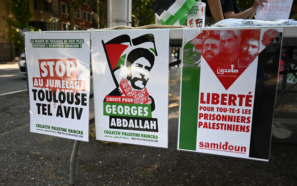 During a new broad labour union demonstration against the French pension reform in Toulouse which brought together nearly 50,000 people, the Collectif Palestine Vaincra was present alongside all the people mobilized, reaffirming that defending the liberation of Palestine from the river to the sea is inseparable from the global struggle for social justice! Underlining this commitment, we displayed numerous posters and banners in support of the release of Georges Abdallah and the over 4,900 Palestinian prisoners, in support of the Palestinian resistance, and against the twinning of Toulouse with Tel Aviv.