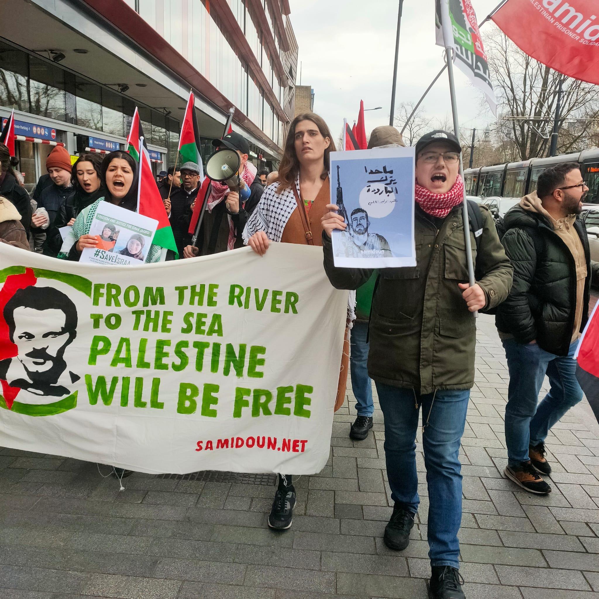 1. Mobilize actions, demonstrations, direct actions and creative interventions – Take to the streets to defend the Palestinian people and their resistance. Join with Samidoun Deutschland’s action in Berlin this Friday — and keep organizing up to and beyond 22 March. There is a vast depth of support for the Palestinian people everywhere around the world, including inside the imperialist powers. It is our responsibility to act and make it impossible to continue their support for the crimes against the Palestinian people. Direct actions like those taken by Palestine Action have already shut down multiple weapons facilities in Britain owned by Israeli arms companies, and even more action can provide further direct support to the Palestinian people.