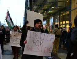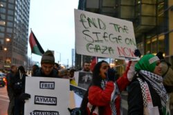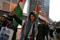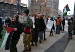 The protesters were organized by the Chicago Movement for Palestinian Rights (CMPR), Palestine Solidarity Group (PSG) – Chicago, and the U.S. Palestinian Community Network (USPCN) – Chicago. The marchers included college students and veterans of the Palestinian movement.