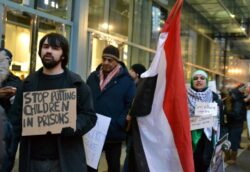 The protest called on supporters of Palestinian political prisoners to take action by calling President Obama at 202-456-1111; Secretary of State John Kerry at 212-647-4000; and the Office of Near East Affairs at 202-647-7209 to demand the U.S. administration: Condemn and sanction Israel for the killing of Arafat Jaradat; intervene for the immediate release of Samer Issawi, the other hunger strikers, and all the Palestinian administrative detainees and political prisoners held by Israel; and end all aid to Israel’s military occupation of Palestinian lands.