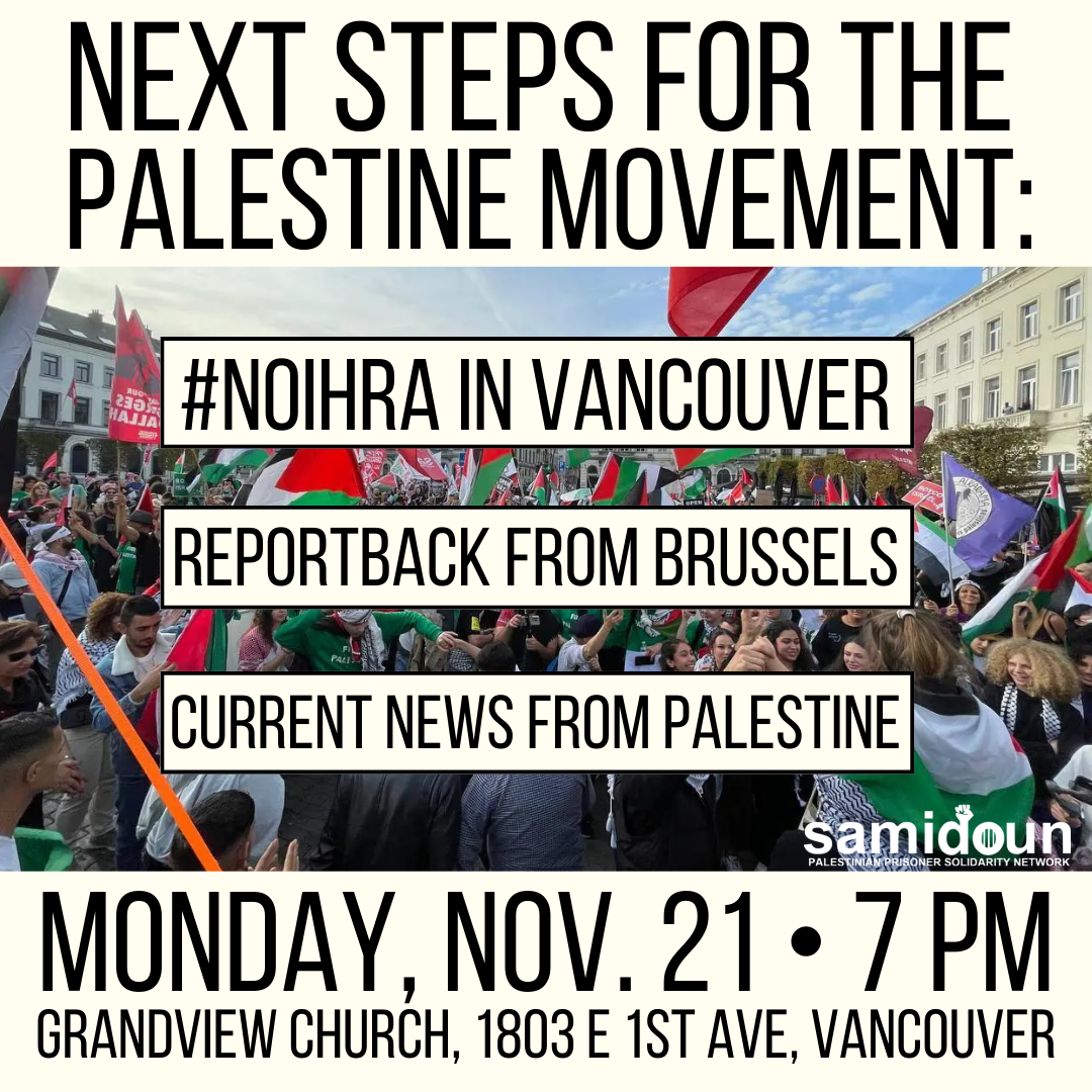 Join Samidoun Vancouver for an evening of discussion, learning and strategy for the Palestine liberation movement, locally and globally.