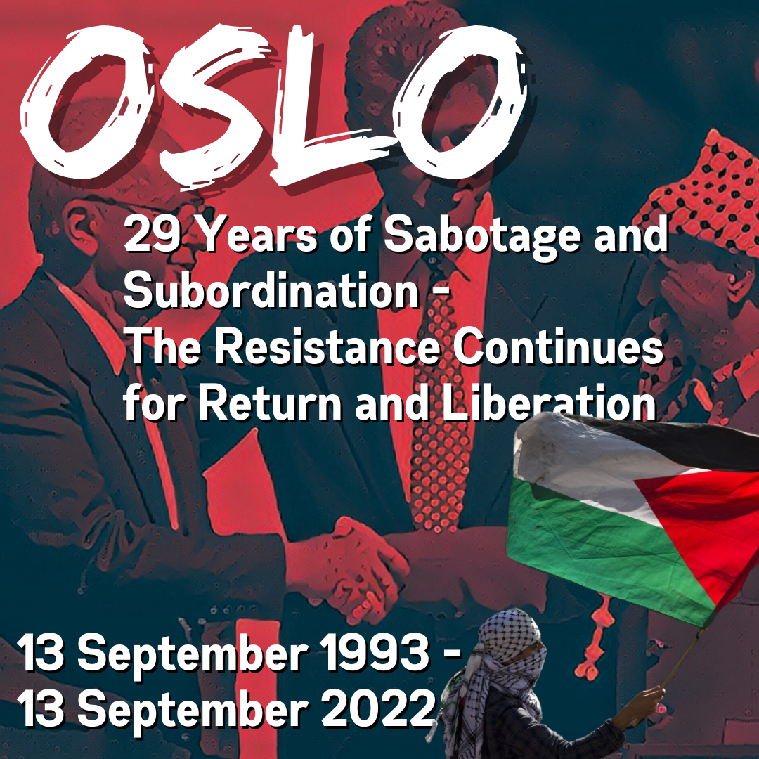 The Palestinian people continue to resist colonization, occupation and oppression in all forms, and continue to stand on the front lines against imperialism, despite the devastating effects and the heavy weight of the Oslo project. On the 29th anniversary of the Oslo project, it remains the overarching framework for imperialist and Zionist division and control of Palestine and reactionary Arab regimes’ roadway to normalization. In order to march forward to the freedom of Palestinian prisoners, the return of Palestinian refugees and the liberation of Palestine from the river to the sea, the Oslo project must be decisively overthrown and rejected.