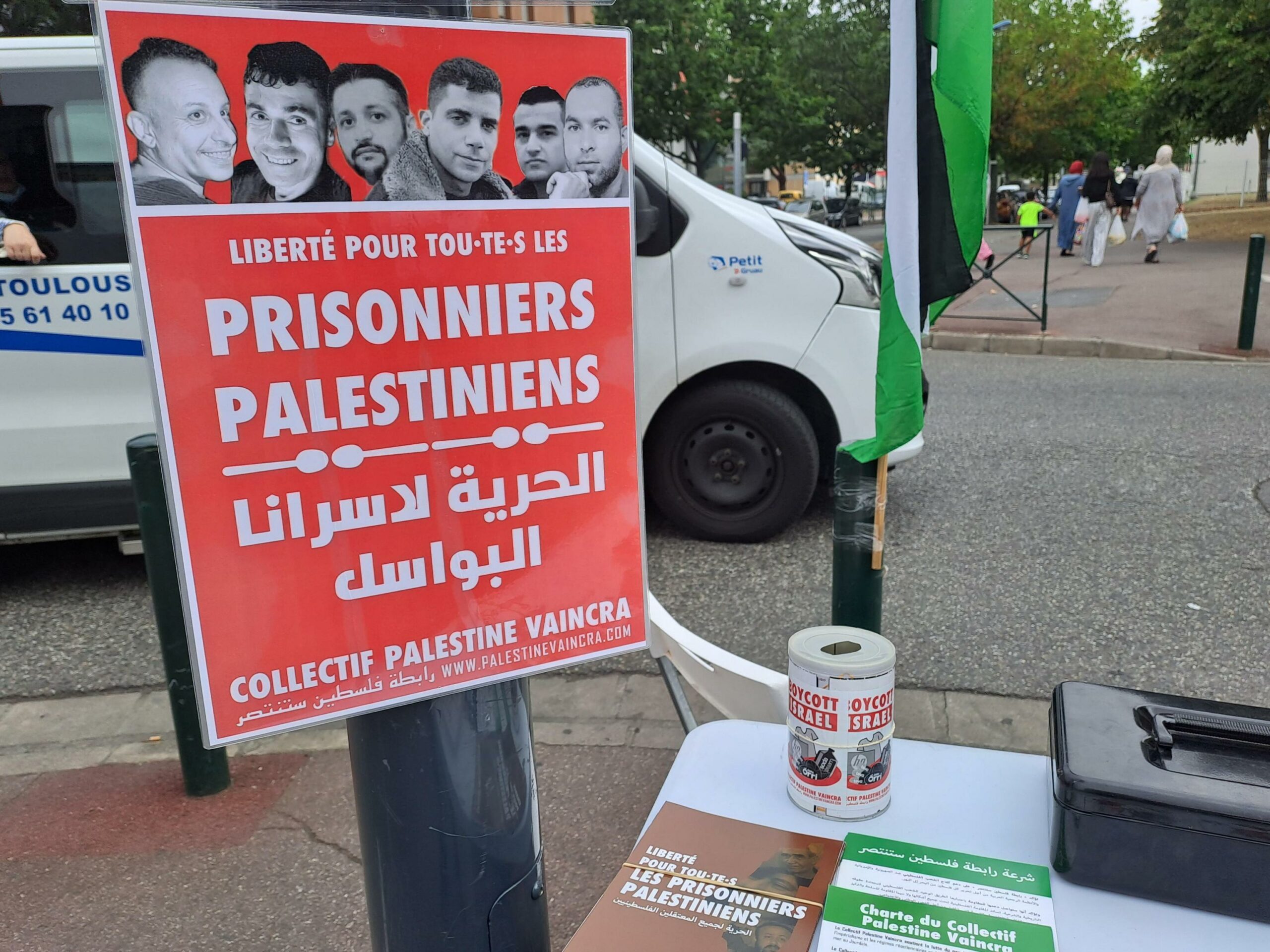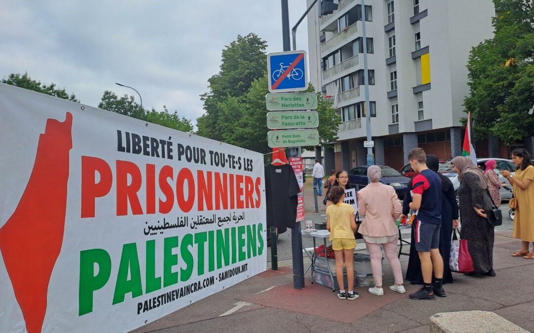 Accompanied by a banner and many posters highlighting the Collectif’s commitment to the liberation of all 4,450 Palestinian prisoners, participants in the Stand distributed hundreds of flyers highlighting the urgent situation of Awawdeh, whose life is at risk. He weighs only 35 kg and has vowed to continue his hunger strike until his release, while the occupation has been forced to