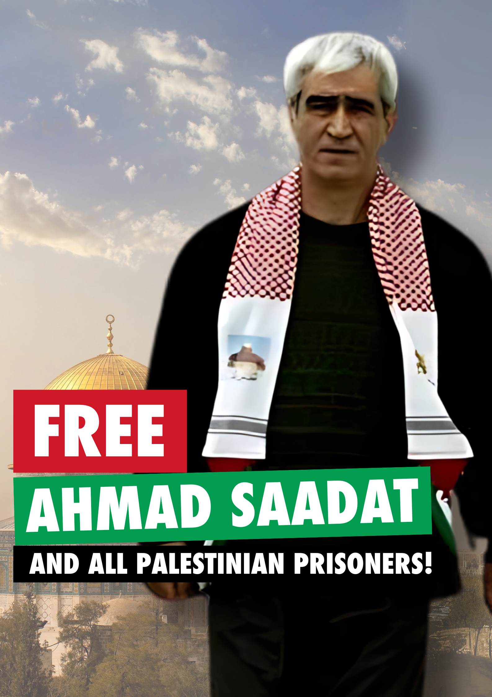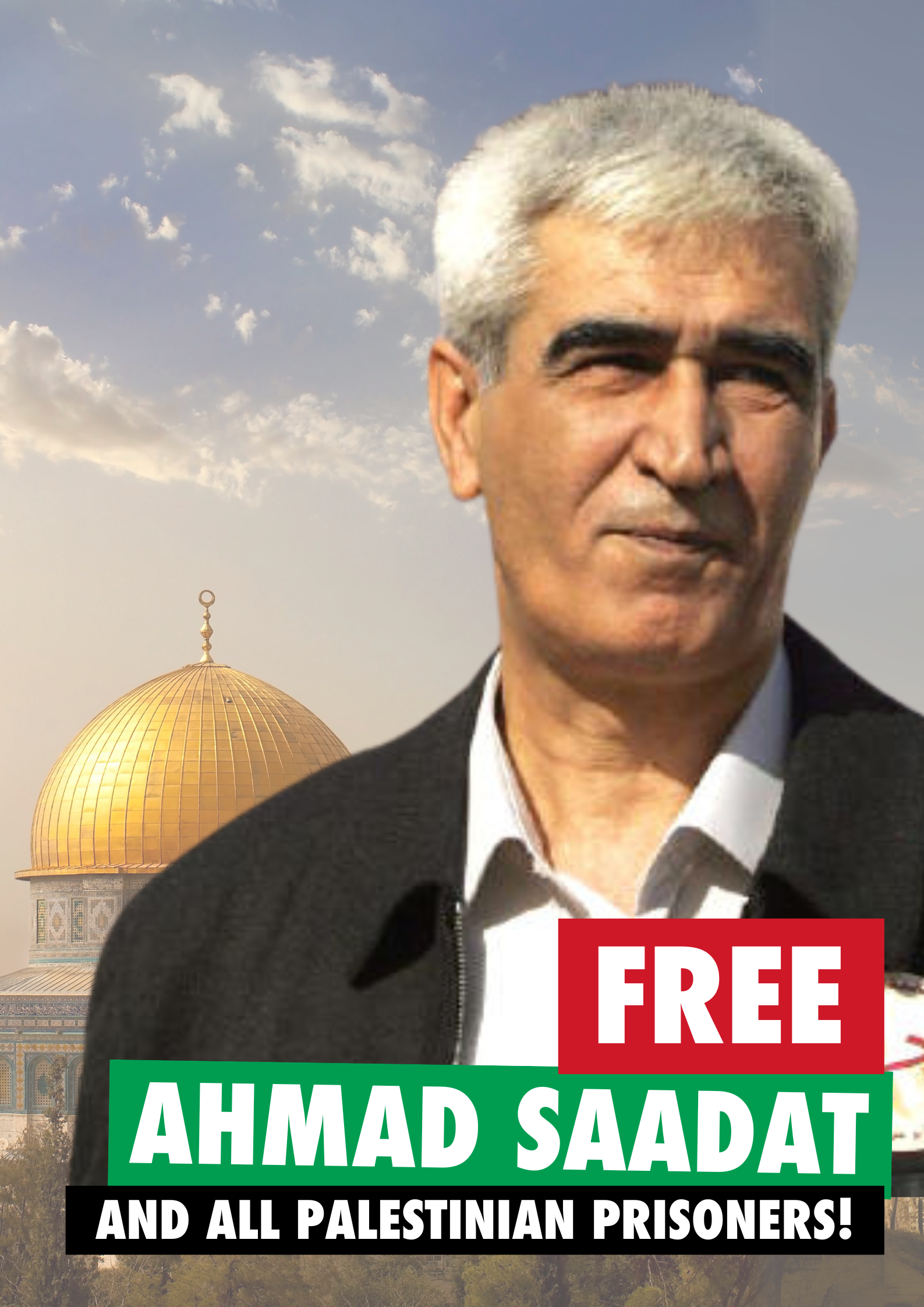 Ahmad Sa’adat is the imprisoned General Secretary of the Popular Front for the Liberation of Palestine. One of over 10,000 Palestinian political prisoners, he has been sentenced to 30 years in Zionist prisons for a range of “security-related” political offenses. These charges include membership in a prohibited organization (the PFLP, of which Sa’adat is General Secretary), holding a post in a prohibited organization, and incitement, for a speech Sa’adat made following the Israeli assassination of his predecessor, Abu Ali Mustafa, in August 2001, in which he declared “an eye for an eye, a tooth for a tooth.” In retaliation for the murder of Abu Ali Mustafa, on 17 October 2001, fighters from the PFLP’s armed wing assassinated Rehavam Ze’evi, the notoriously far-right, racist Tourism Minister in Ariel Sharon’s Israeli government, in the Hyatt hotel in Jerusalem.