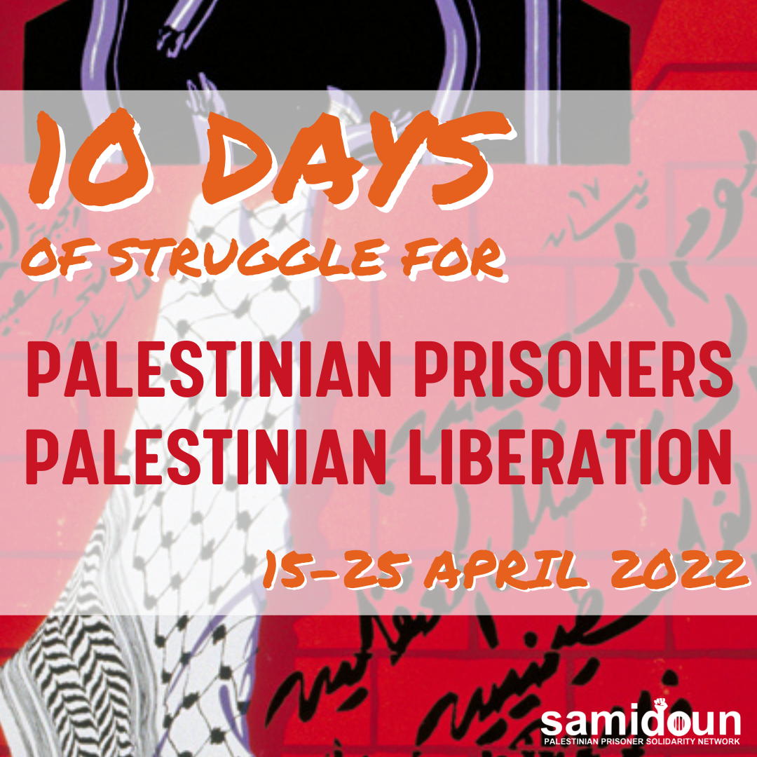 - Join the Palestinian Prisoners’ Days of Struggle, 15 to 25 April 2022 with protests and actions