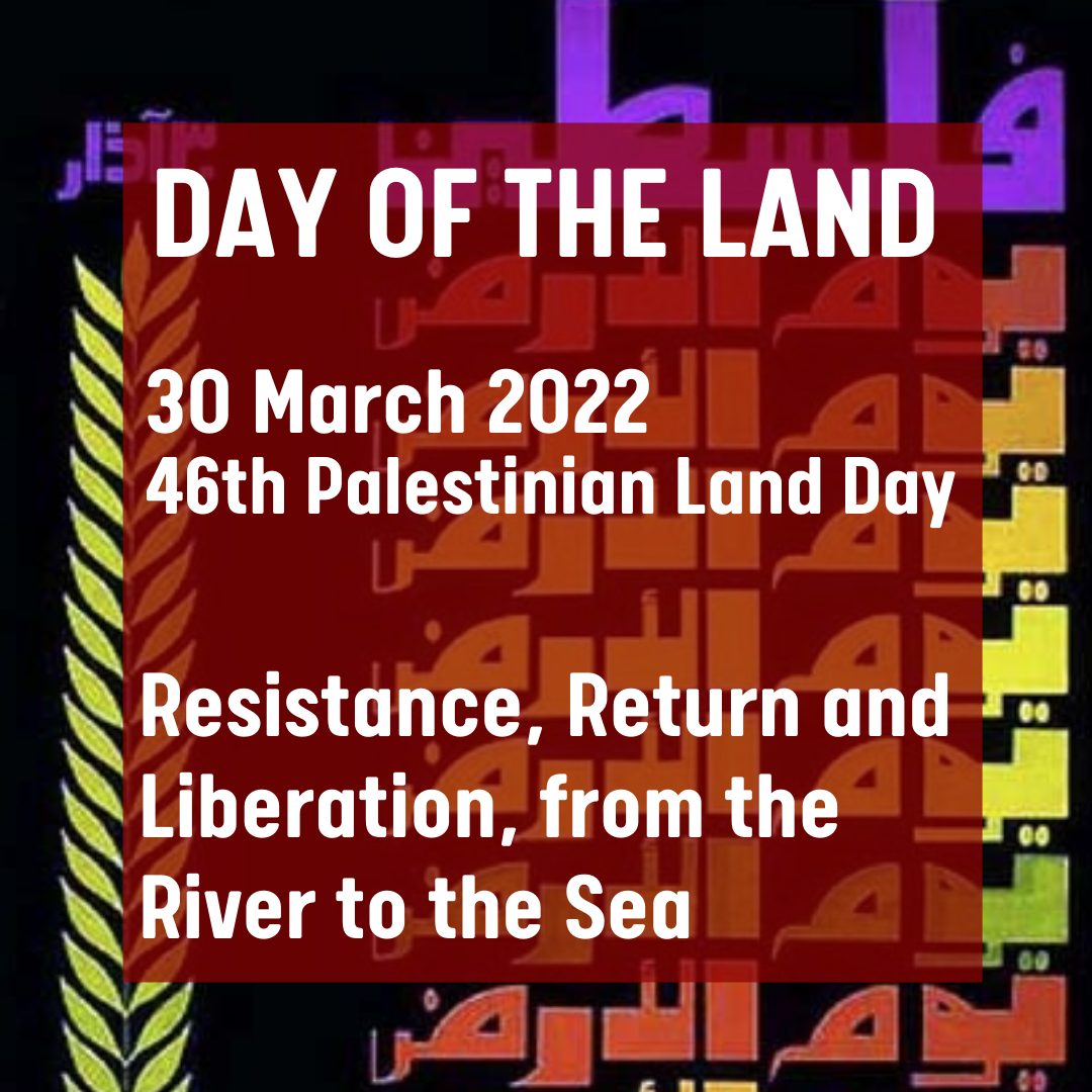We mark the 46th Palestinian Land Day on 30 March 2022. This day is an occasion to celebrate, intensify and uphold Palestinian resistance to Zionism, colonialism, apartheid and occupation, recalling those whose lives have been stolen in defense of the land and people of Palestine, and to organize and struggle for return and liberation, from the river to the sea. As the Palestinian people continue to rise up and take action in resistance to defend their people and liberate their land, the Day of the Land is not only an anniversary but a day of living struggle to uproot colonialism from Palestine.