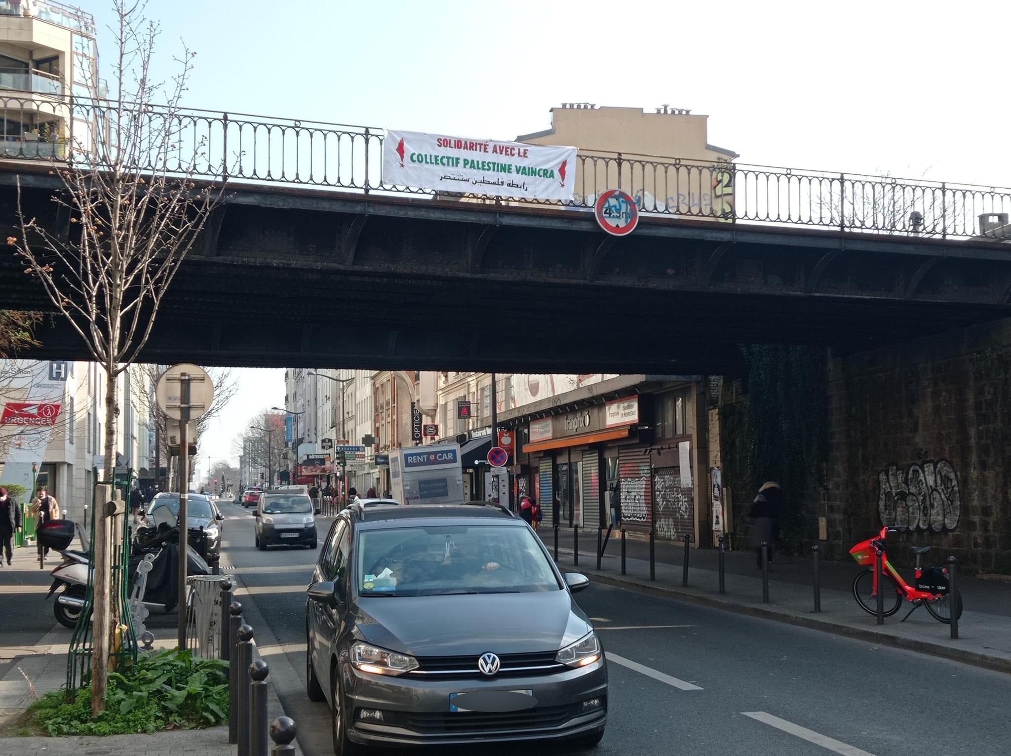 Samidoun Région Parisienne participated in the action and displayed banners in solidarity with the Collectif Palestine Vaincra.