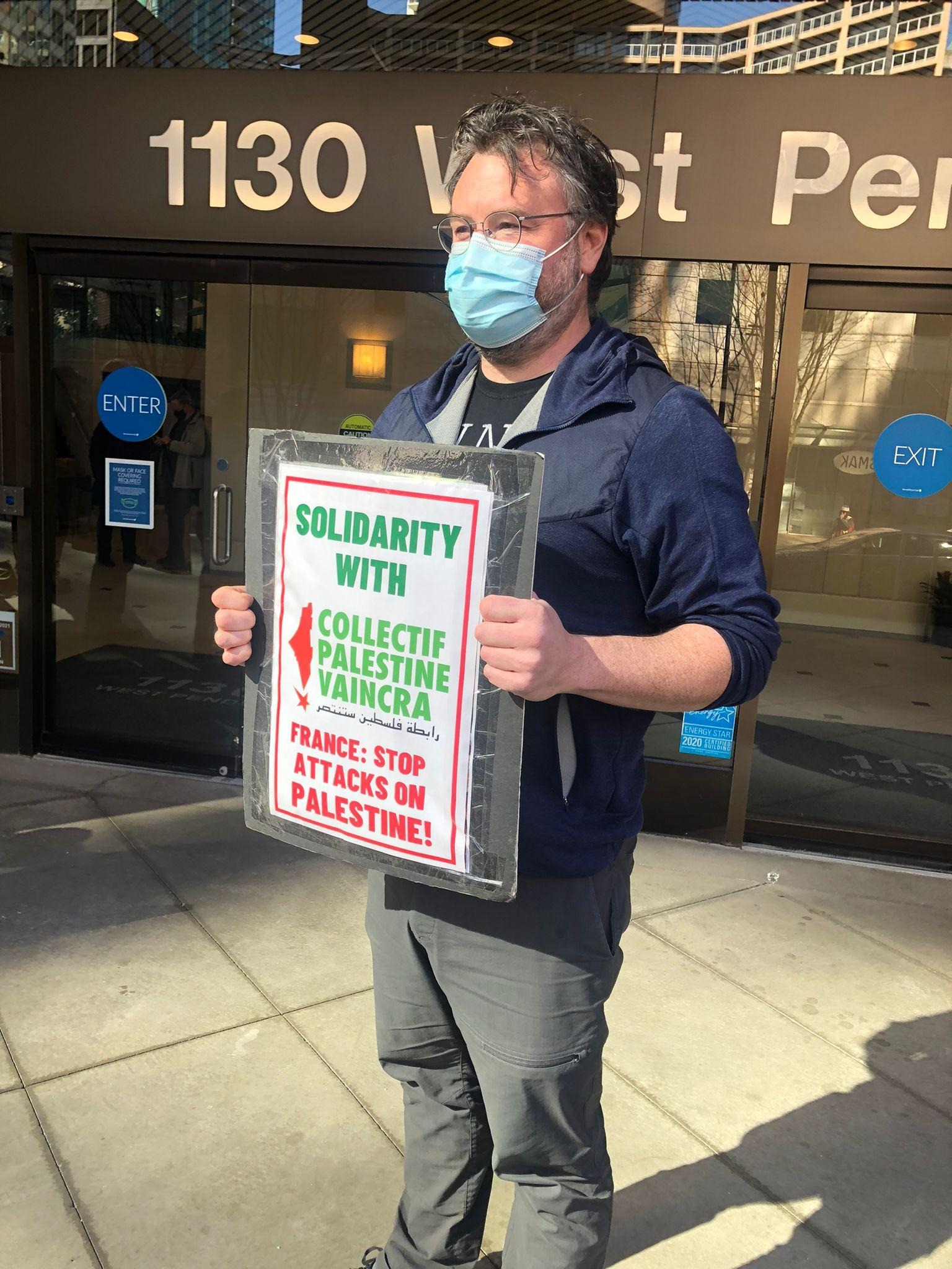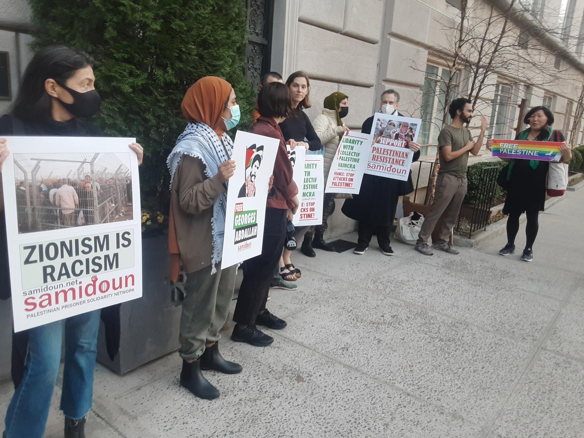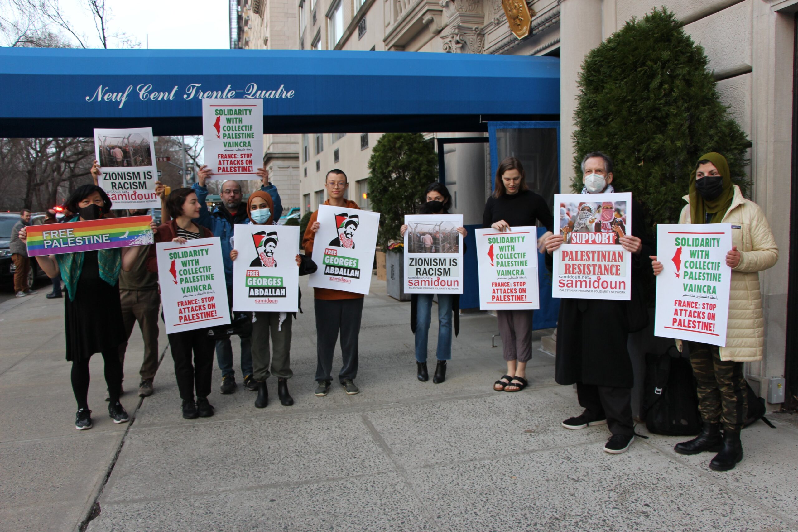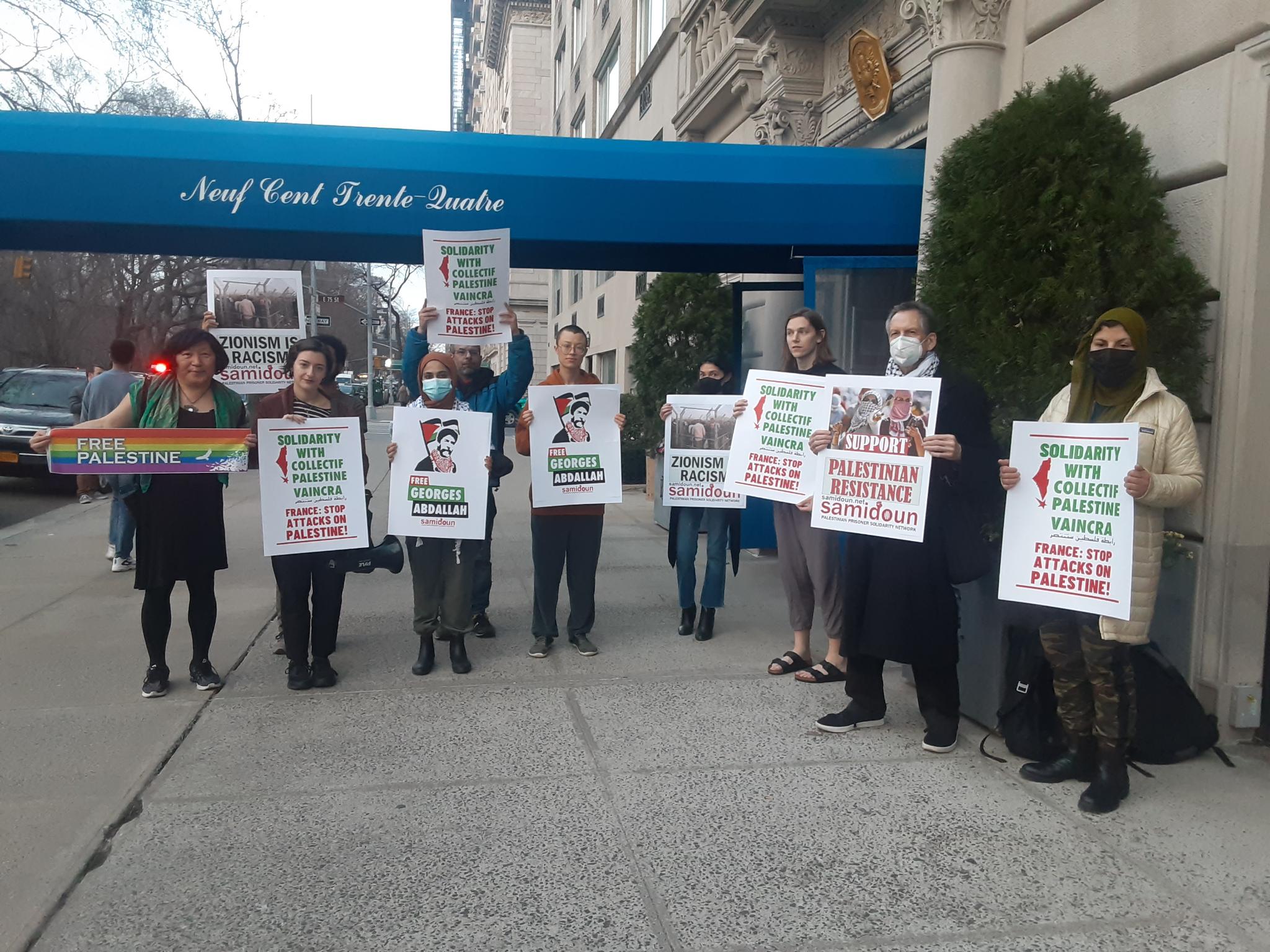 On Friday, 18 March, activists in New York City gathered outside the French consulate to send a message of solidarity with the Collectif Palestine Vaincra and Comite Action Palestine, two organizations dissolved — essentially banned — by the French government for their Palestine solidarity work.