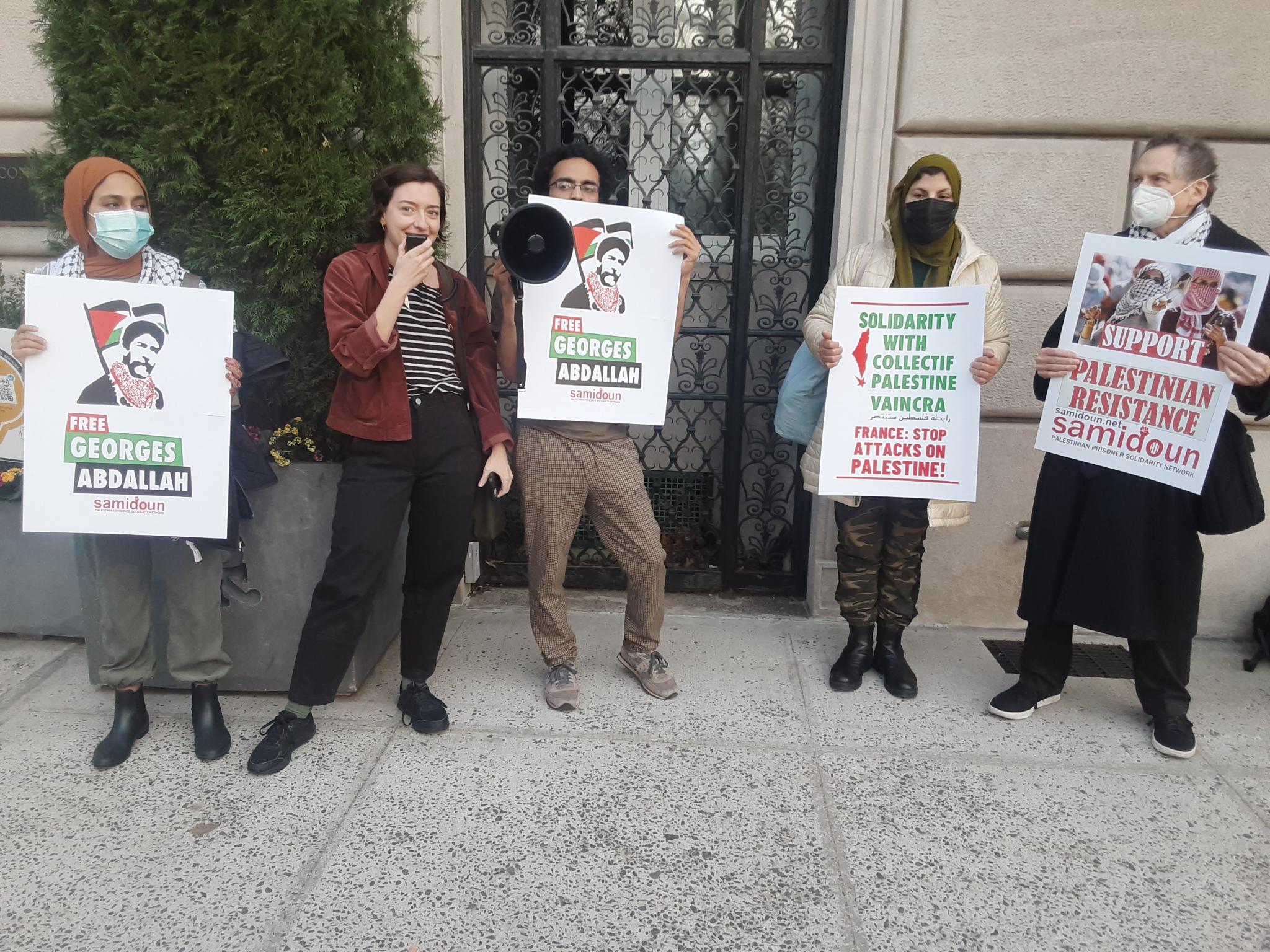 Participants in the protest spoke out against the French state’s escalation of attacks on the Palestine movement as well as its ongoing imprisonment of Georges Ibrahim Abdallah. Abdallah, the Lebanese Arab Communist struggler for Palestine whose life is profiled in the documentary film “Fedayin,” has been jailed in France for over 37 years despite being eligible for release since 1999. The US government has been aligned with the French state in keeping Abdallah locked behind bars rather than returned home to his comrades and family in Lebanon.
