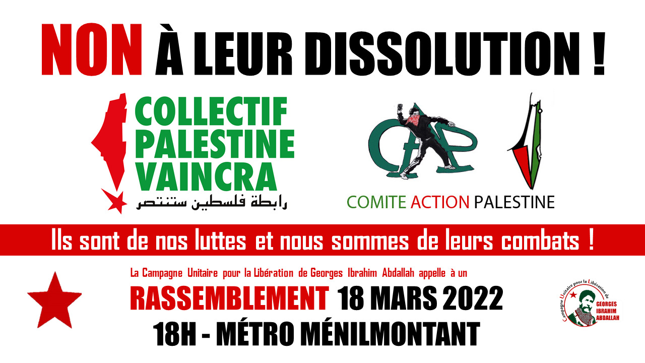 In Paris, the Unitary Campaign to free Georges Abdallah and other activists showed their support against the dissolutions: