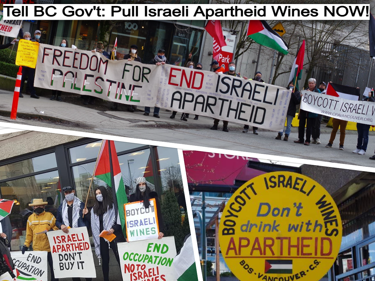 Major international and Israeli human right groups, including Amnesty International, have determined that Israel is committing the crime of apartheid. Yet the BC government insists to carry Israeli wines in publicly owned BC liquor stores, even though most are linked to the illegal Israeli settlement enterprise.
