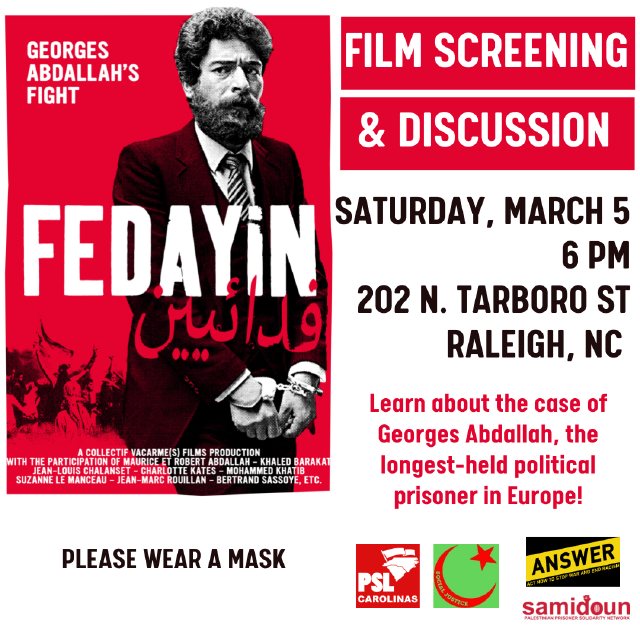 17:30 |Fedayin, le combat de Georges Abdallah | by Collectif Vacarme (s) film | France 2020 | 81 ‘(Arabic, English, French, Italian subtitles)