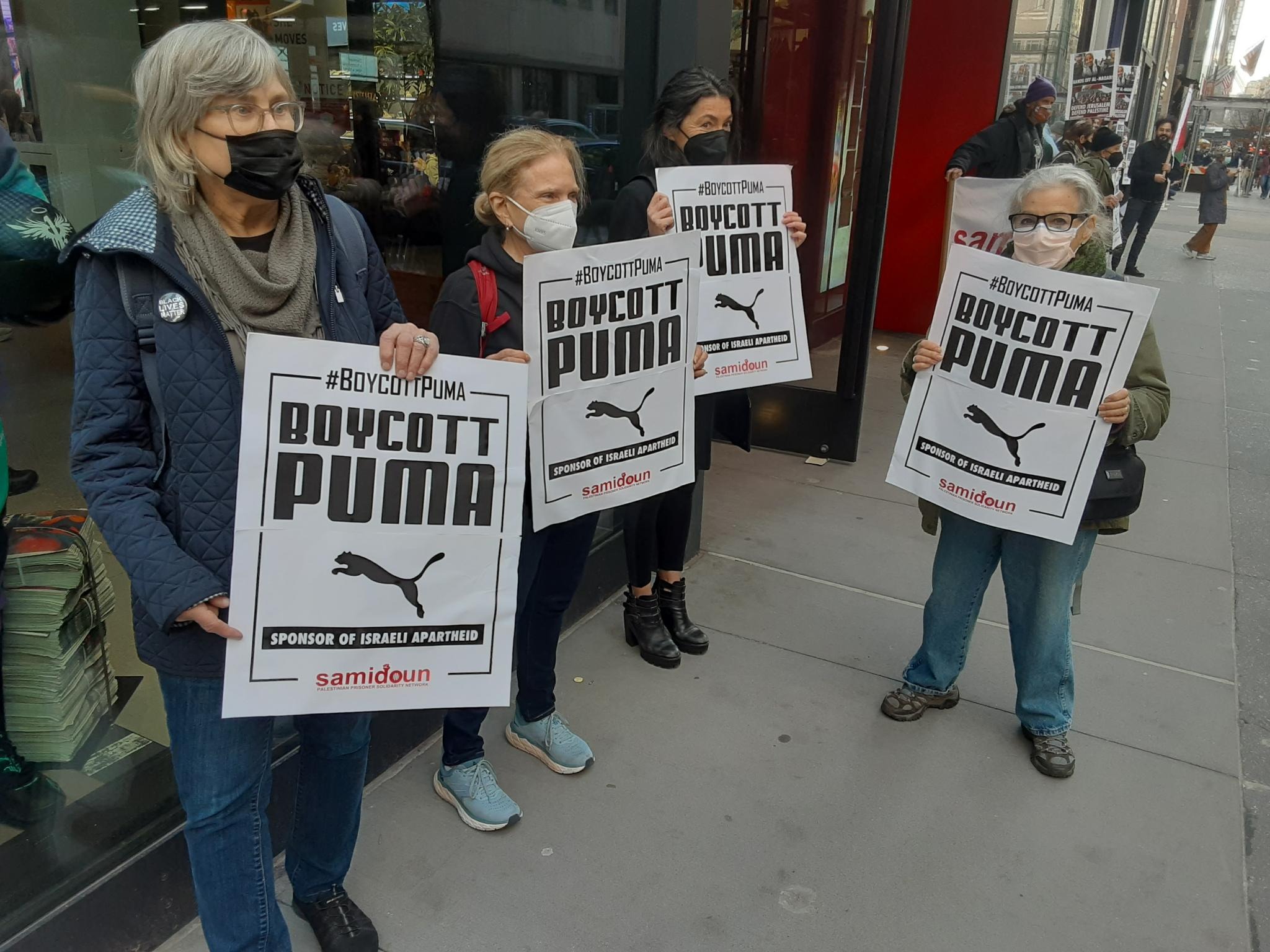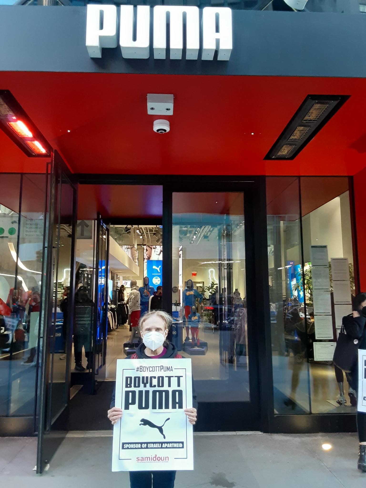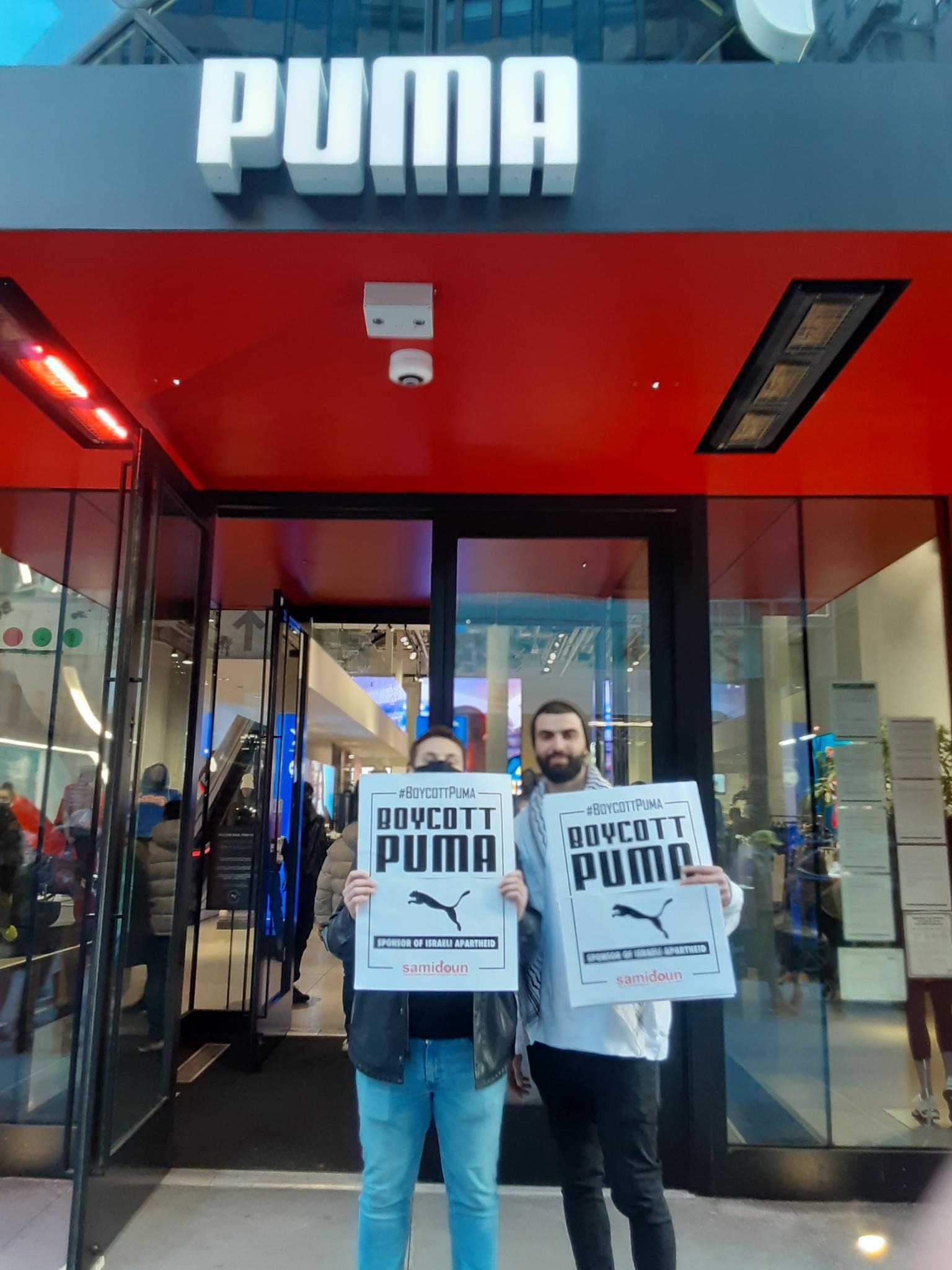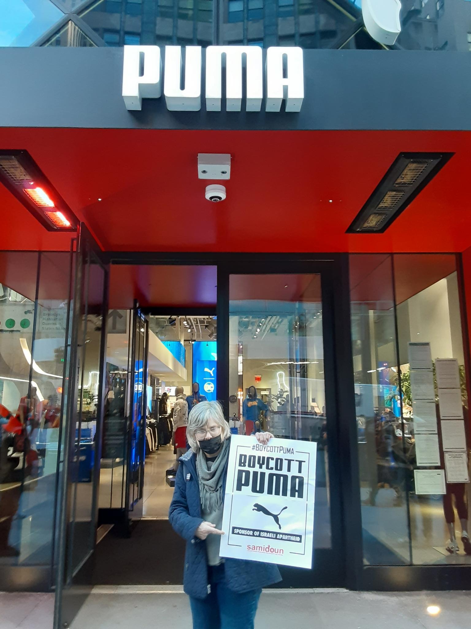 Participants in the demonstration chanted loudly outside PUMA’s flagship store in Manhattan, denouncing the company’s complicity in Zionist crimes. Laila of Samidoun chanted “Long live Palestine, Free, free Palestine;” “Puma, Puma, you will see, Palestine will be free! Puma, Puma, you will learn, refugees will return!” outside the large store.