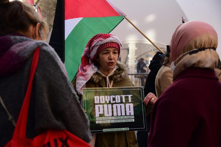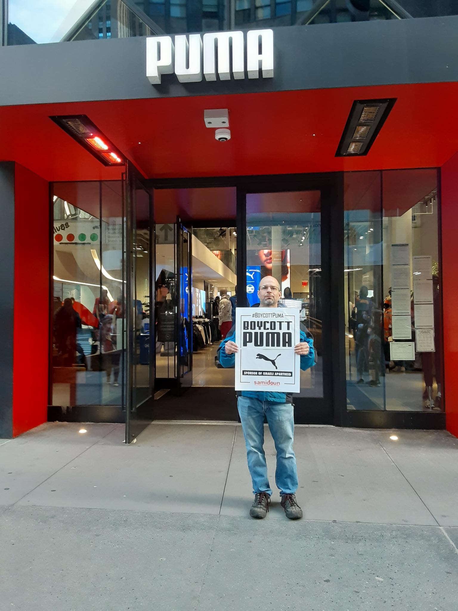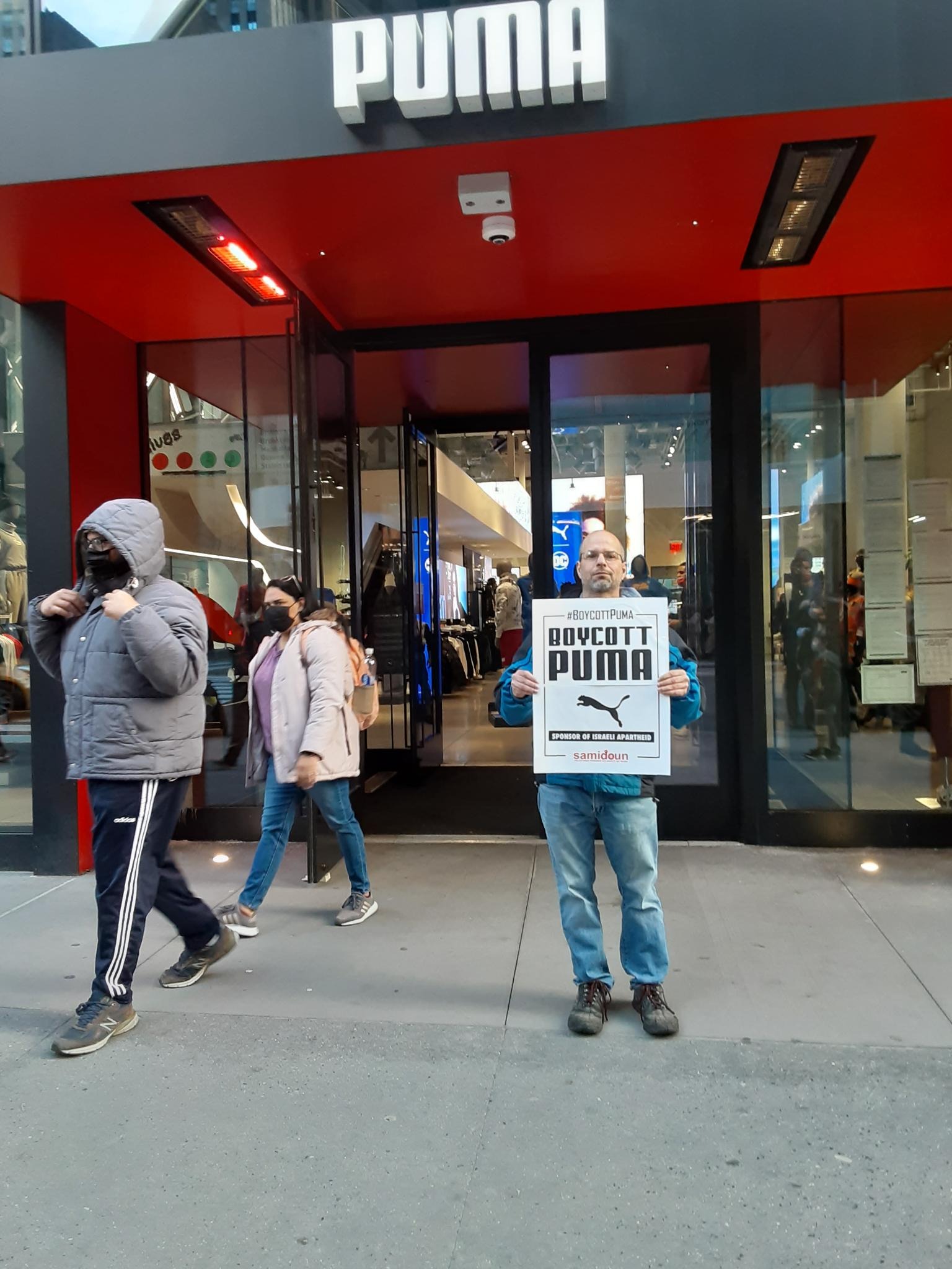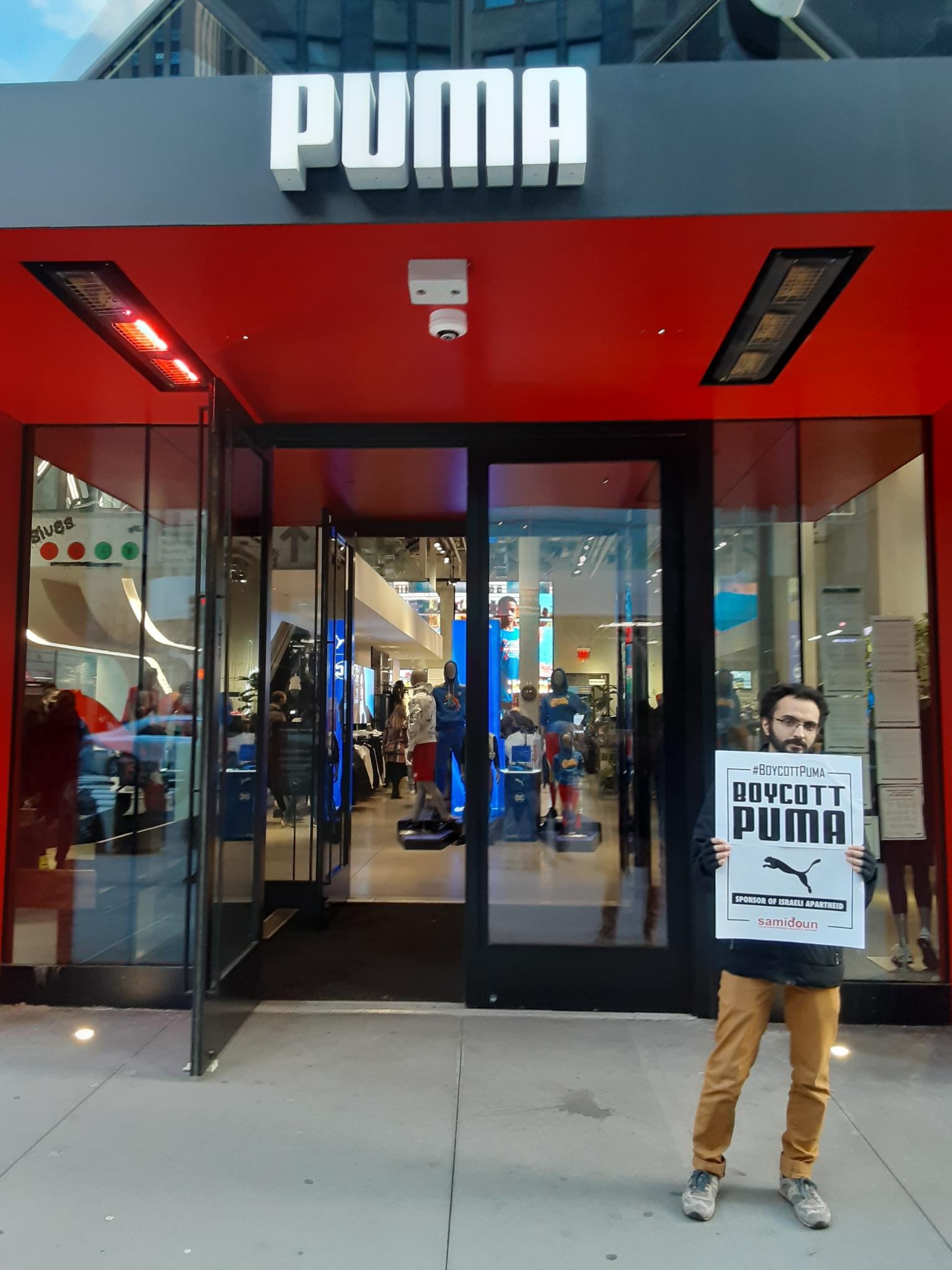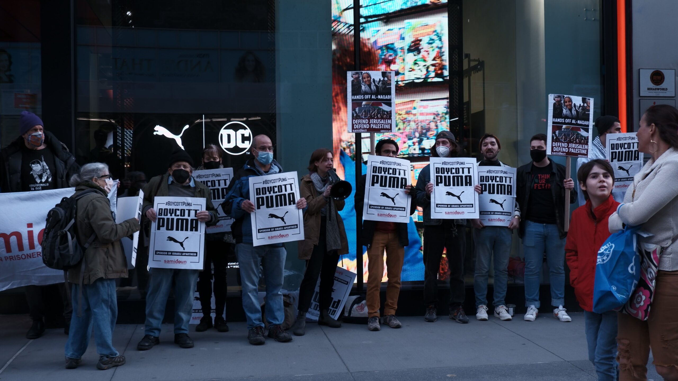 Participants in the demonstration chanted loudly outside PUMA’s flagship store in Manhattan, denouncing the company’s complicity in Zionist crimes. Laila of Samidoun chanted “Long live Palestine, Free, free Palestine;” “Puma, Puma, you will see, Palestine will be free! Puma, Puma, you will learn, refugees will return!” outside the large store.