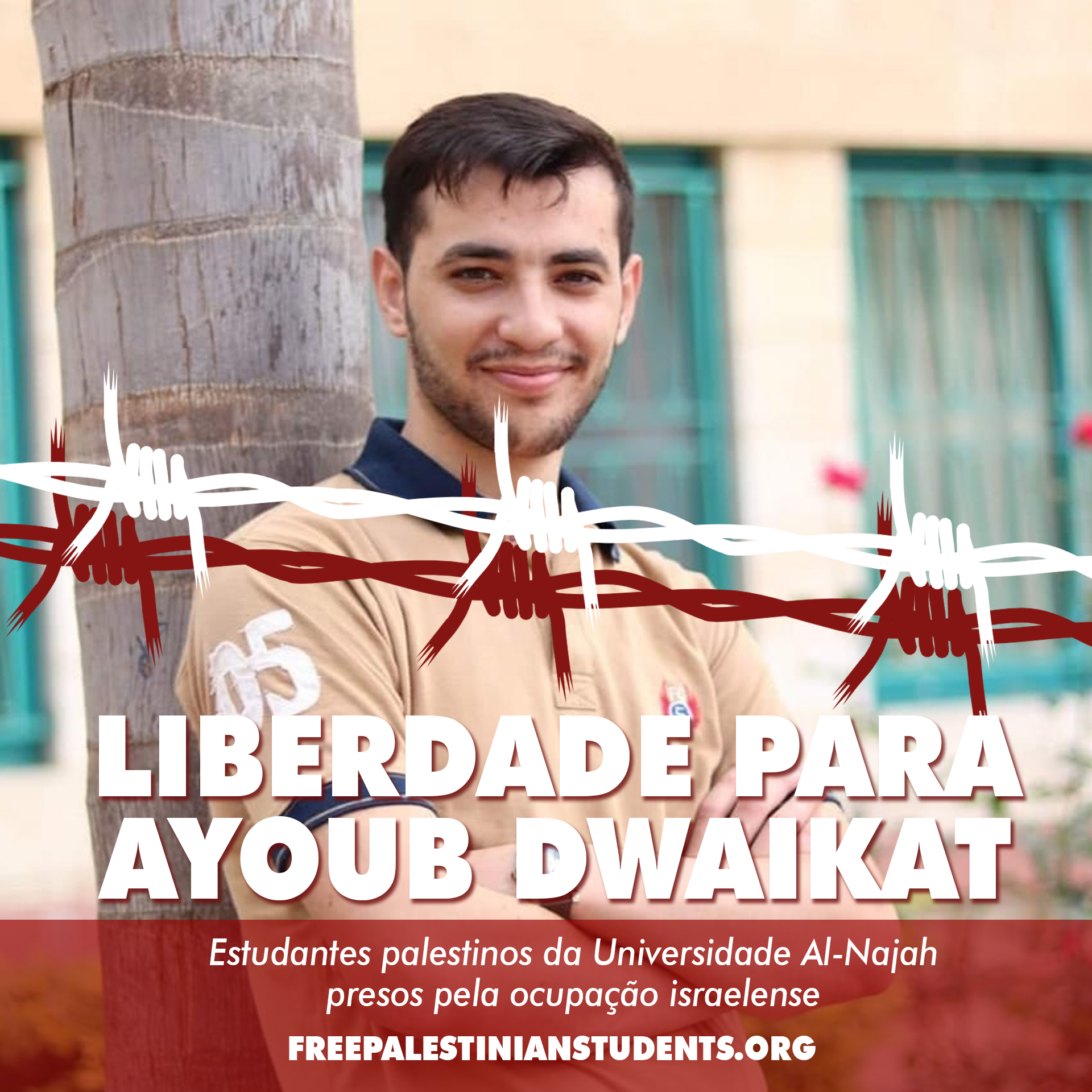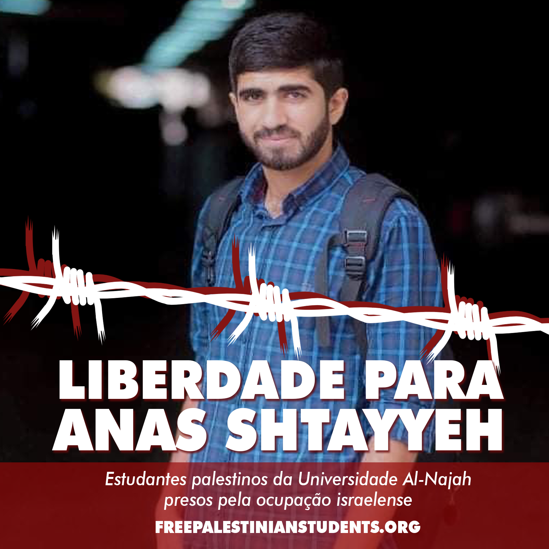 A campanha #FreePalestinianStudents mobiliza mais de 300 organizações em todo o mundo para defender os estudantes palestinos da prisão política e exigir sua liberdade. Nós nos unimos para pedir ação e apoio aos estudantes palestinos atrás das grades, incluindo: