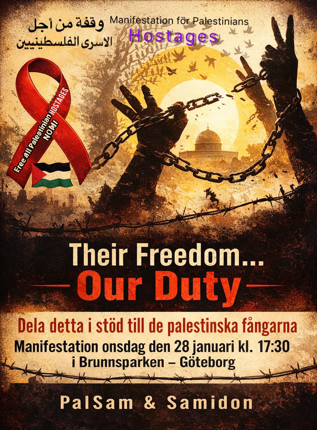 De palestinska fångarna är kompassen i vår rörelse – kom på en manifestation för att visa stöd för kämparna som står i kampens frontlinjer!