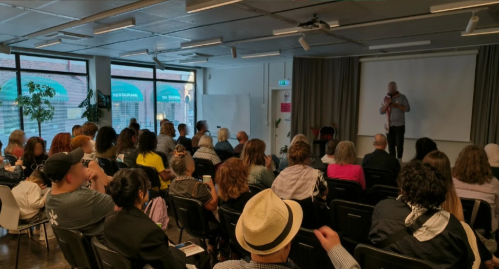 Sedan starten 2018 har vår verksamhet sett ut på en lång rad olika sätt. Vi arrangerar och deltar på demonstrationer och manifestationer, ordnar brevskrivning till palestinska fångar, har studiecirklar för att fördjupa vår kunskap och håller föreläsningar för att sprida den till andra. Vi drar i kulturdagar, konferenser och filmkvällar. Vi översätter texter och gör zines, står i bokbord, informerar i sociala medier och på gator med affischer och klistermärken.
